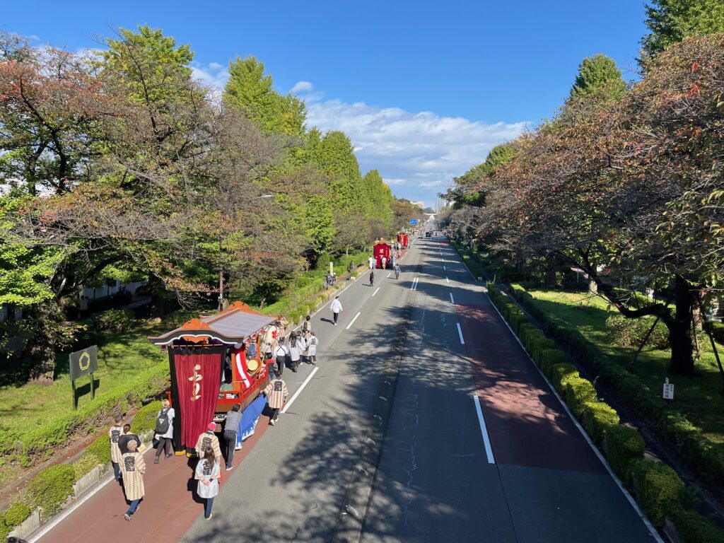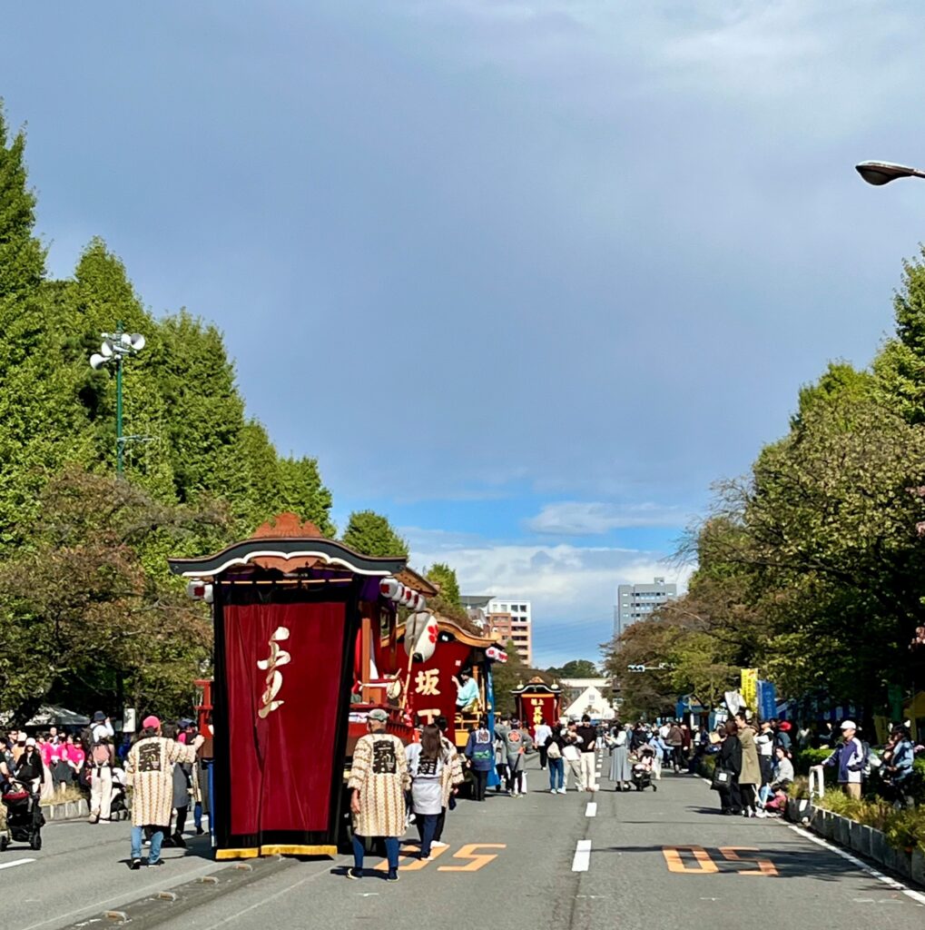 「天下市」は、市内商店や飲食店の露店が出店されるなど、国立市最大の青空商業祭と言われ、「市民まつり」が同時開催されます。「市民まつり」では、国立大学通りは歩行者天国となり、数台の山車も曳かれ、市民パレードなど恒例の秋のイベントとなっています。