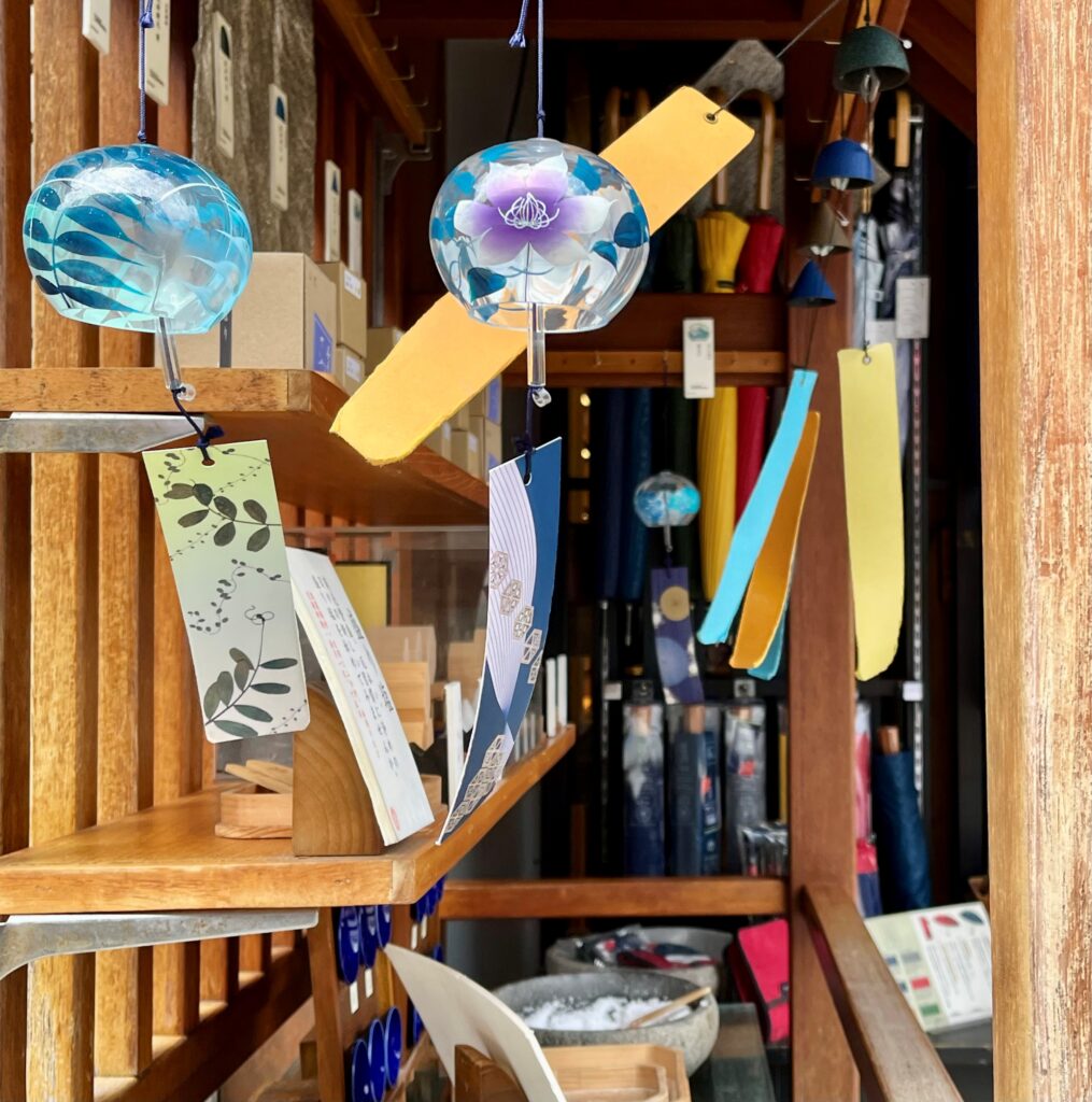 JR中央線吉祥寺駅から井の頭公園に繋がる「七井橋通り」の雑貨店の硝子風鈴が残暑の中、涼感の趣を呈していました。