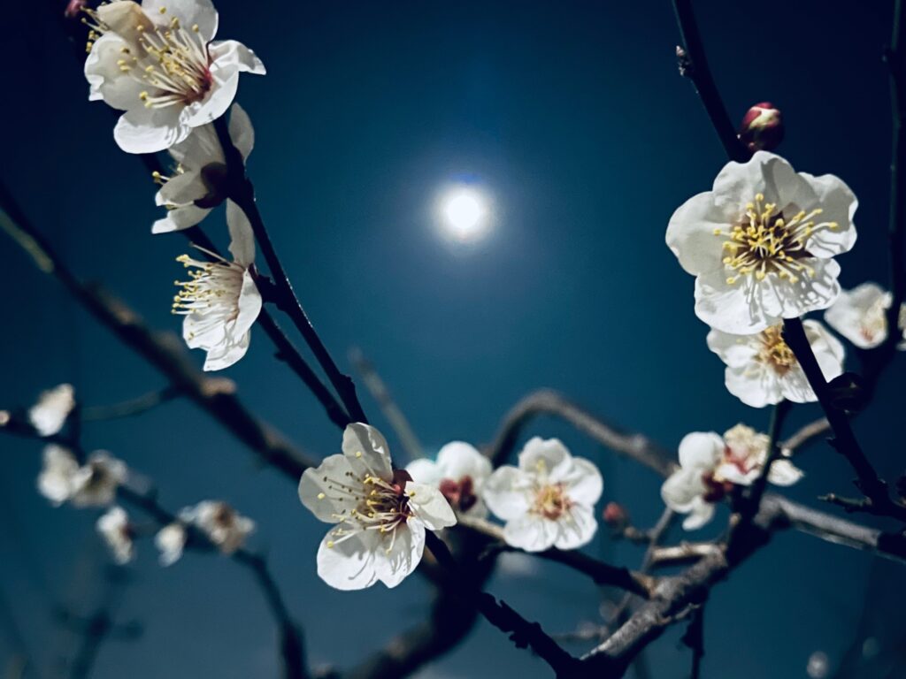 東日本最古と言われる天満宮、谷保天満宮[*3]の梅の花と淡い香が、この季節の定番の情感にある。二月の満月(今春は、2月2日)は、「雪月」「スノームーン」と言わるが、「Snow Moon」は、北米先住民の伝承が起源らしい・・・。